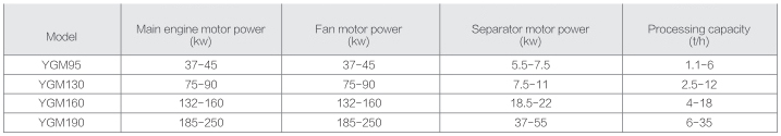 The output in the table refers to the standard of ground calcite.Technical data is subject to change without further notice.Please refer to the product manual for details.