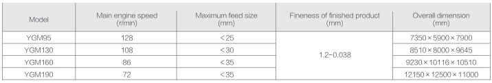 Compared with other mills,the output is increased by 10-20%under the same power conditions,and the grinding force of the grinding roller on the material is increased by 800-1200kg under the action of the high-pressure spring.